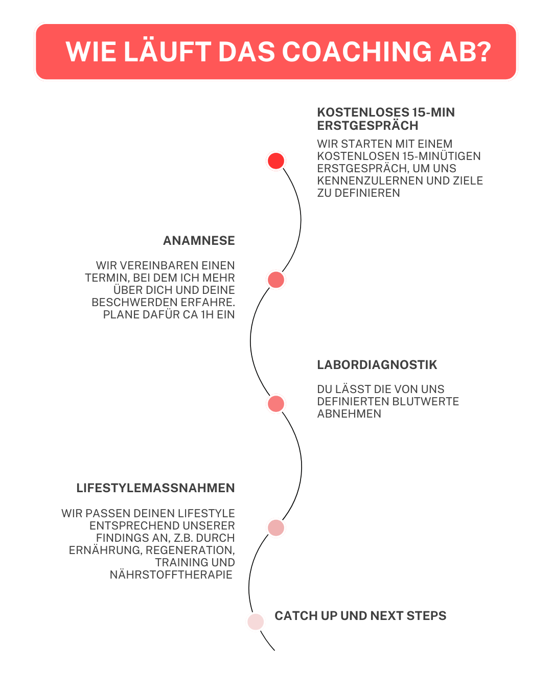 Lass uns gemeinsam an deinem next level an Energie und Wohlbefinden arbeiten. Dafür erwartet dich im Gesundheitswerk-Coaching eine klare Roadmap. Schritt für Schritt abgestimmt auf dich, deine Blutwerte und deine Bedürfnisse.